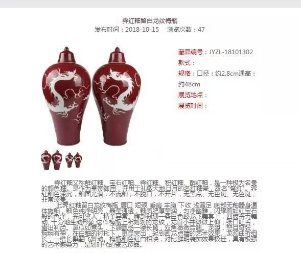 도자기 원나라 홍유 매병(국제 경매 출품작) GN 갤러리의 "원나라 홍유 매병" 에 관심 있으신분 은 관리자 에게 별도로 문의 주세요!임대 도 가능 하오니 편하게 문의..